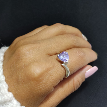 Romántico y místico, este anillo en plata pura con piedra amatista en forma de corazón irradia amor, protección y estilo.