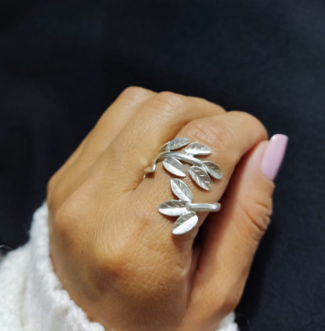 Este anillo artesanal en plata 950 está inspirado en la delicadeza de las hojas, símbolo de crecimiento, renovación y conexión con la naturaleza. Su diseño abierto y ajustable se adapta fácilmente a diferentes tallas, ofreciendo comodidad sin perder estilo. Las formas orgánicas y los detalles finamente trabajados hacen de esta pieza una joya versátil, perfecta para llevar todos los días o destacar en momentos especiales. Ideal para quienes valoran la belleza natural y la funcionalidad en una sola joya.