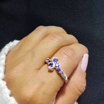 Este anillo está cuidadosamente elaborado en plata 950 y decorado con piedras enjoyadas que aportan color, luz y sofisticación a cada detalle. Su diseño artesanal resalta la belleza de cada gema, creando una composición armoniosa y llamativa. Ideal para quienes buscan una joya única, con un toque alegre y refinado, que combine la nobleza de la plata con el encanto natural de las piedras. Una pieza versátil que ilumina cualquier ocasión.